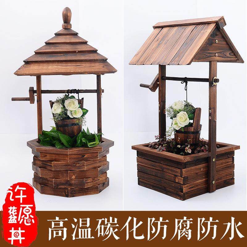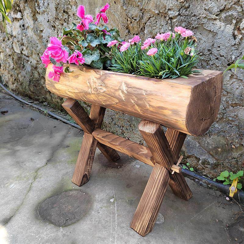 原木创意防腐木花盆阳台庭院老木头花槽花架实木多肉室外户外架子