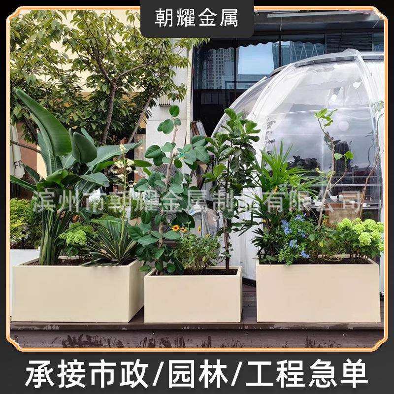 定制不锈钢花箱户外铁艺花盆组合成品花坛售楼部花槽花架移动花池