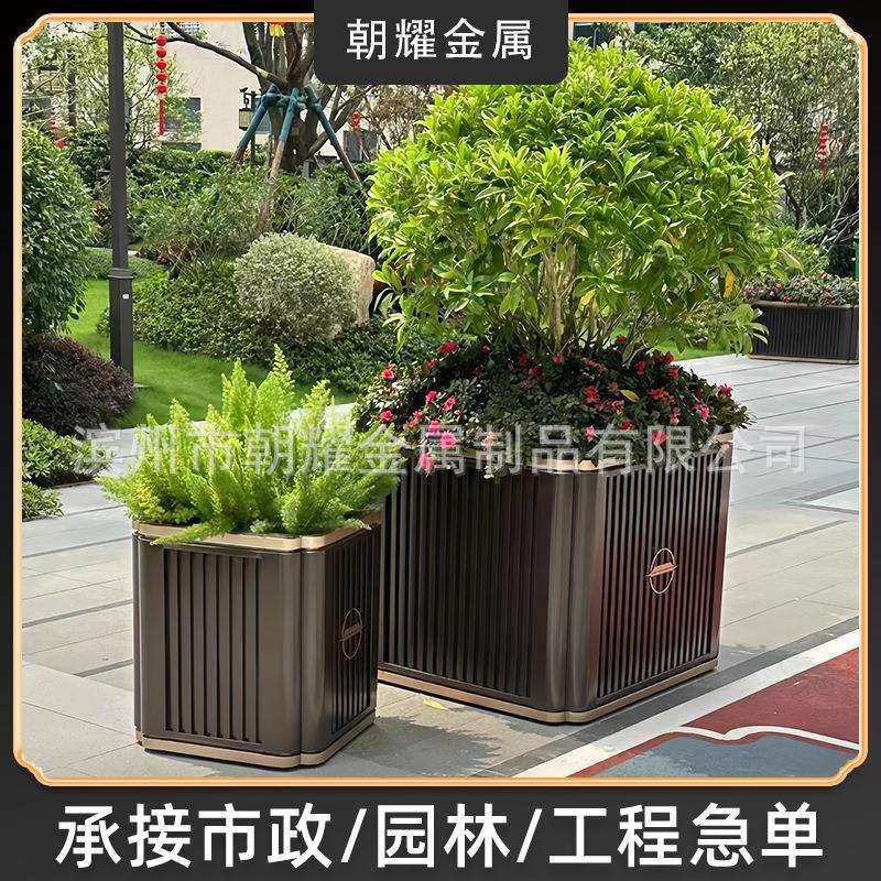 户外不锈钢花箱售楼部广场树箱定制铁艺组合花槽花架外摆花钵北港