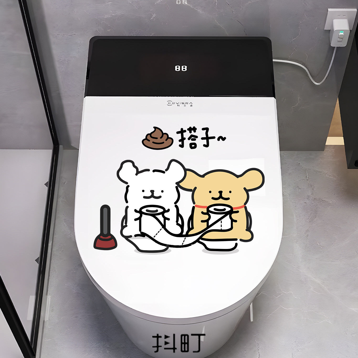 智能马桶盖板可爱小狗卡通可爱厕所浴室推拉门玻璃门创意防水贴纸