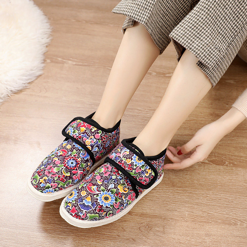 老北京布鞋女鞋冬新款民族风绣花妈妈鞋加绒保暖国风中老年女棉鞋