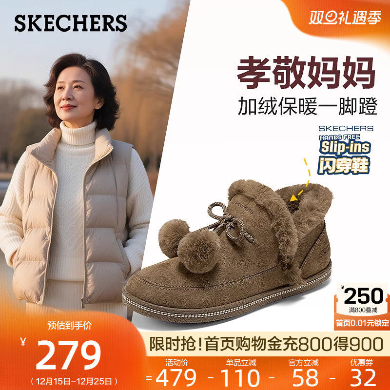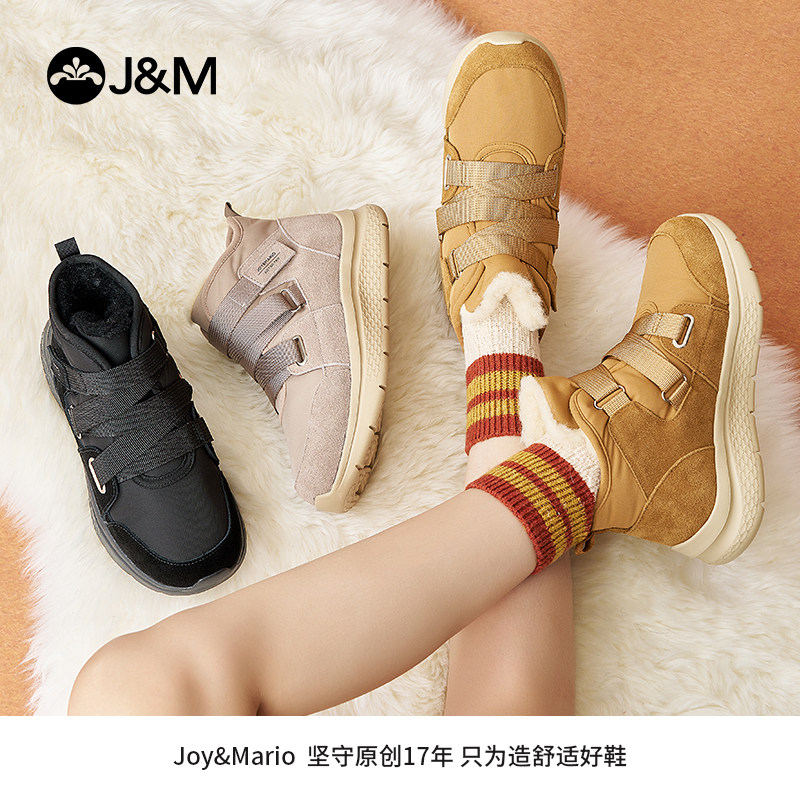 足力健老人鞋官方2025冬季新款妈妈鞋加绒保暖抗寒棉鞋厚底雪地靴