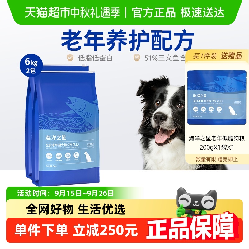 海洋之星三文鱼配方老年犬狗粮高龄犬粮 低脂狗粮 泰迪老龄犬12kg