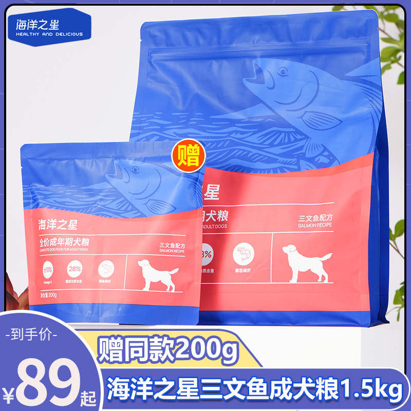 海洋之星狗粮三文鱼全价成犬粮天然无谷通用型中小型狗粮1.5kg