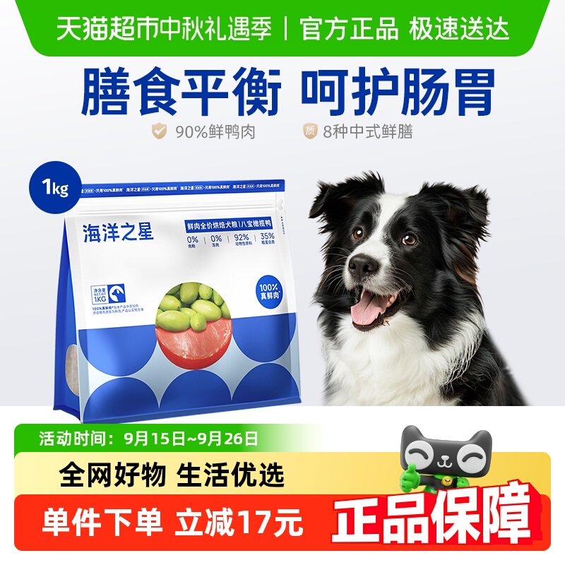 海洋之星500g低温烘焙鲜肉犬粮鸡肉三文鱼美毛后生元益肠胃狗粮