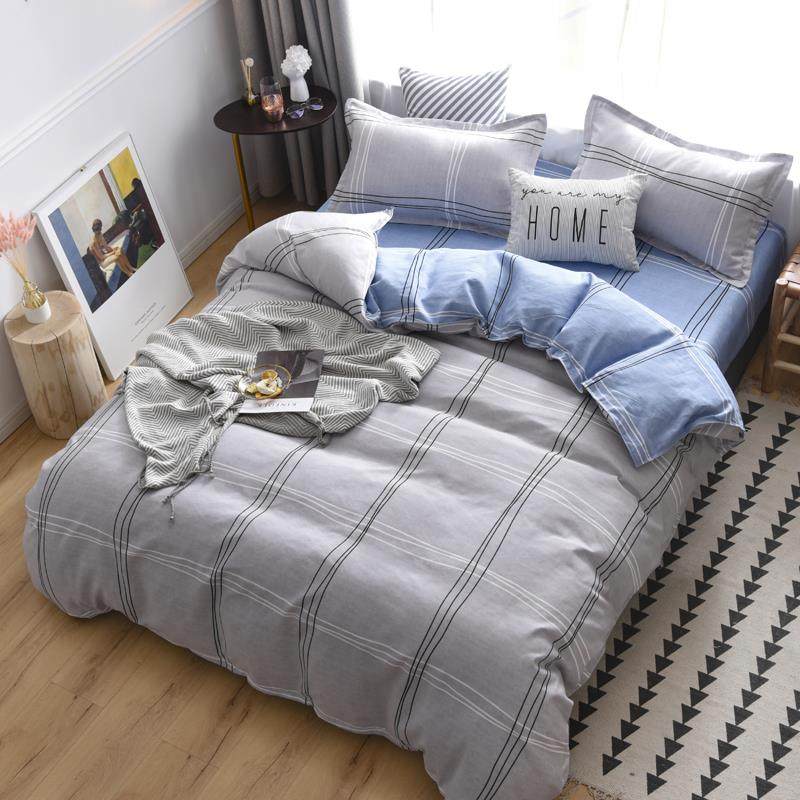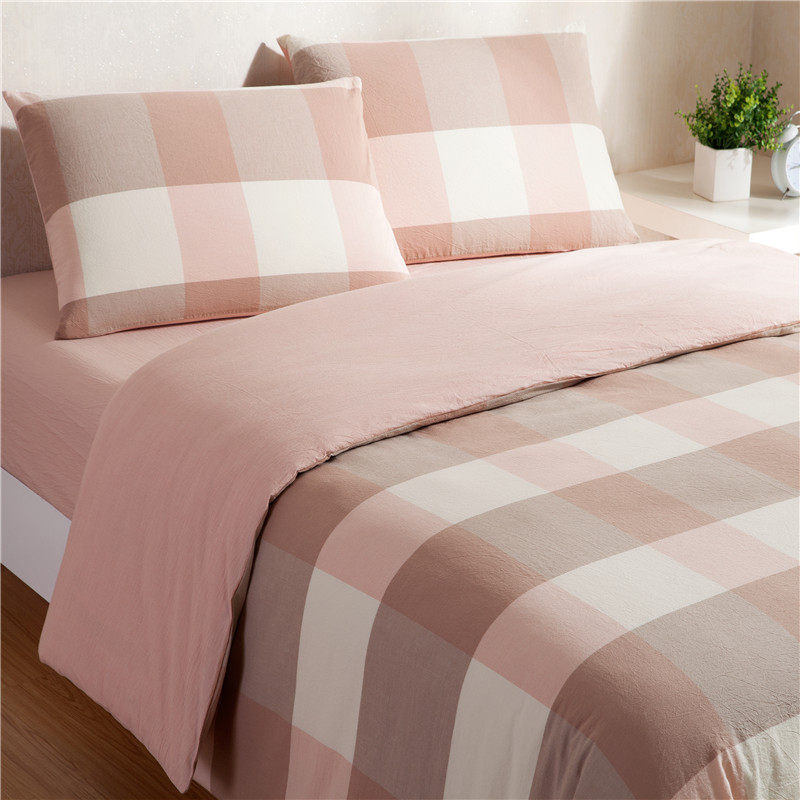 水洗棉格子四件套全棉双人被套纯色床单床笠床上用品纯棉南通家纺