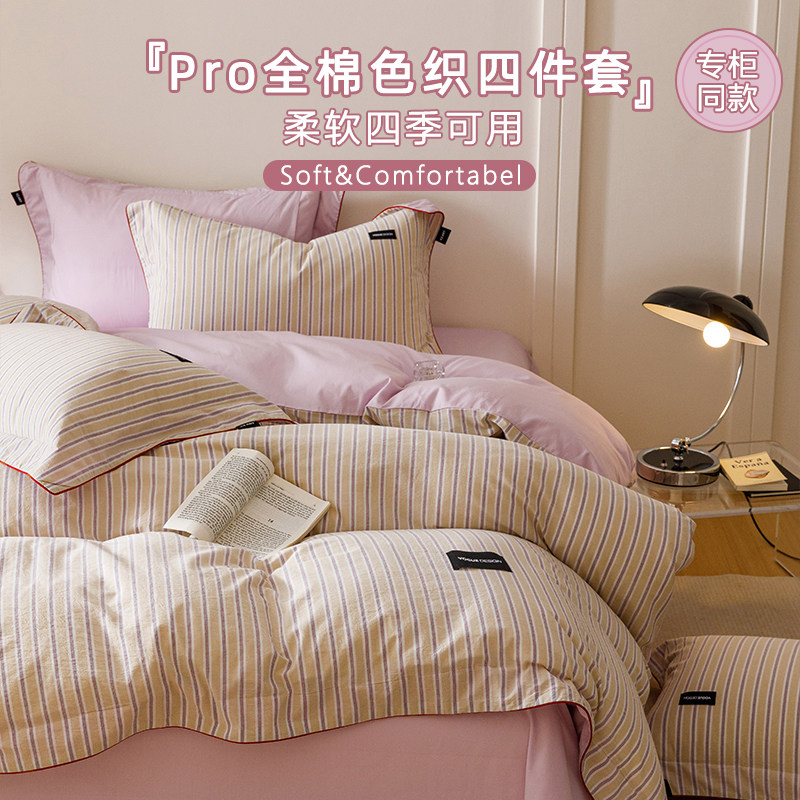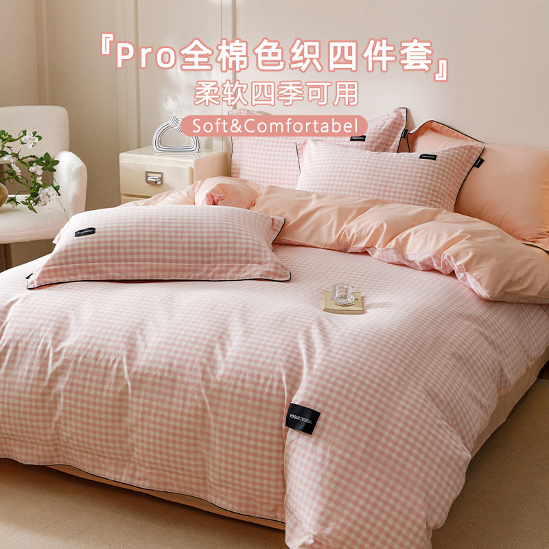 ins纯棉床上用品小红书水洗棉被套1.8m床单床笠100全棉色织四件套