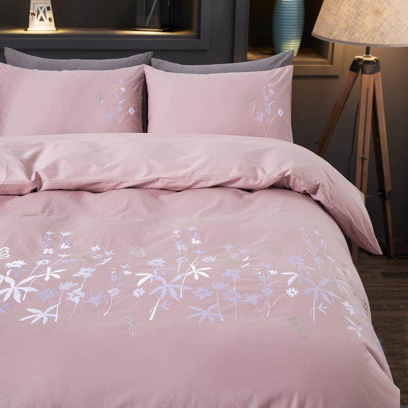 高档特价床上用品刺约绣纯棉四件套绣花色被斜罩被套全棉纹浅粉简