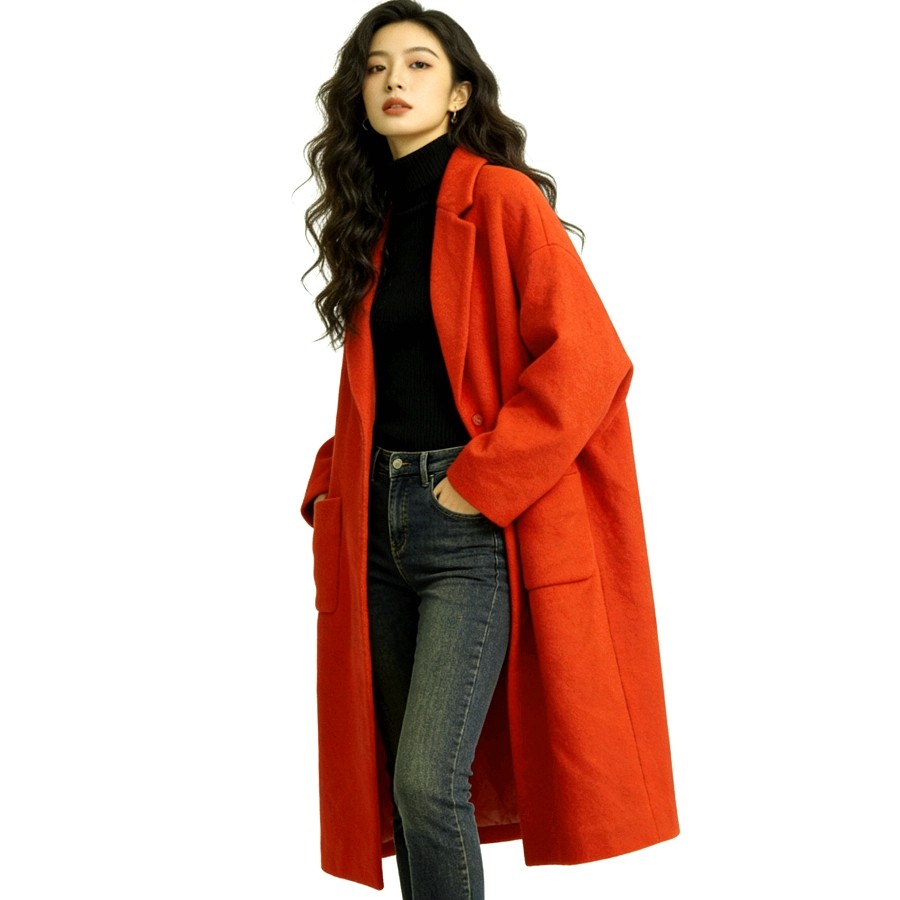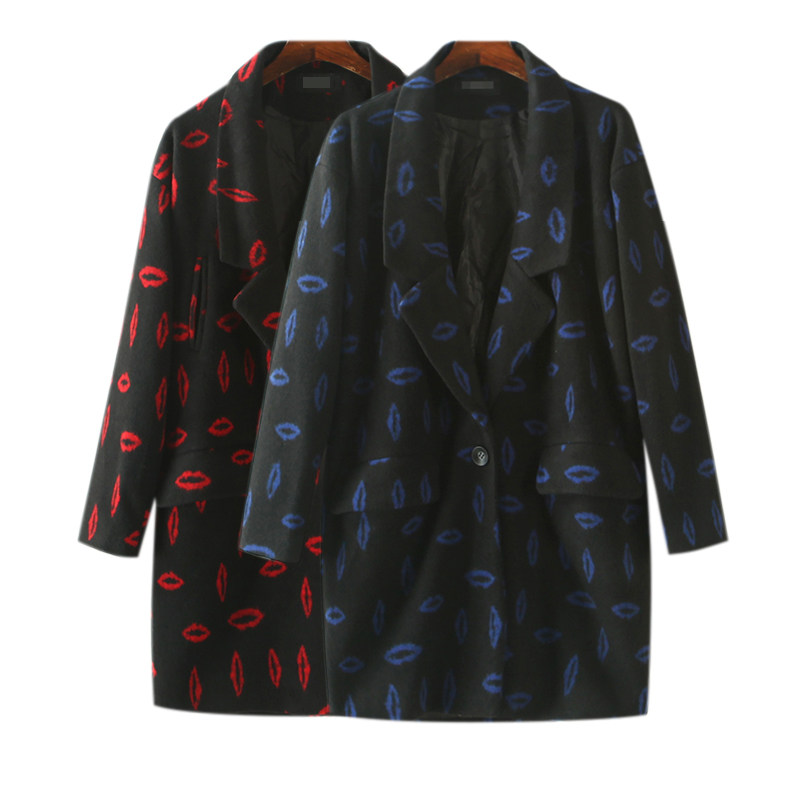 姐姐优品 女装秋冬装潮 东大门大红唇西装领长袖毛呢外套女中长款