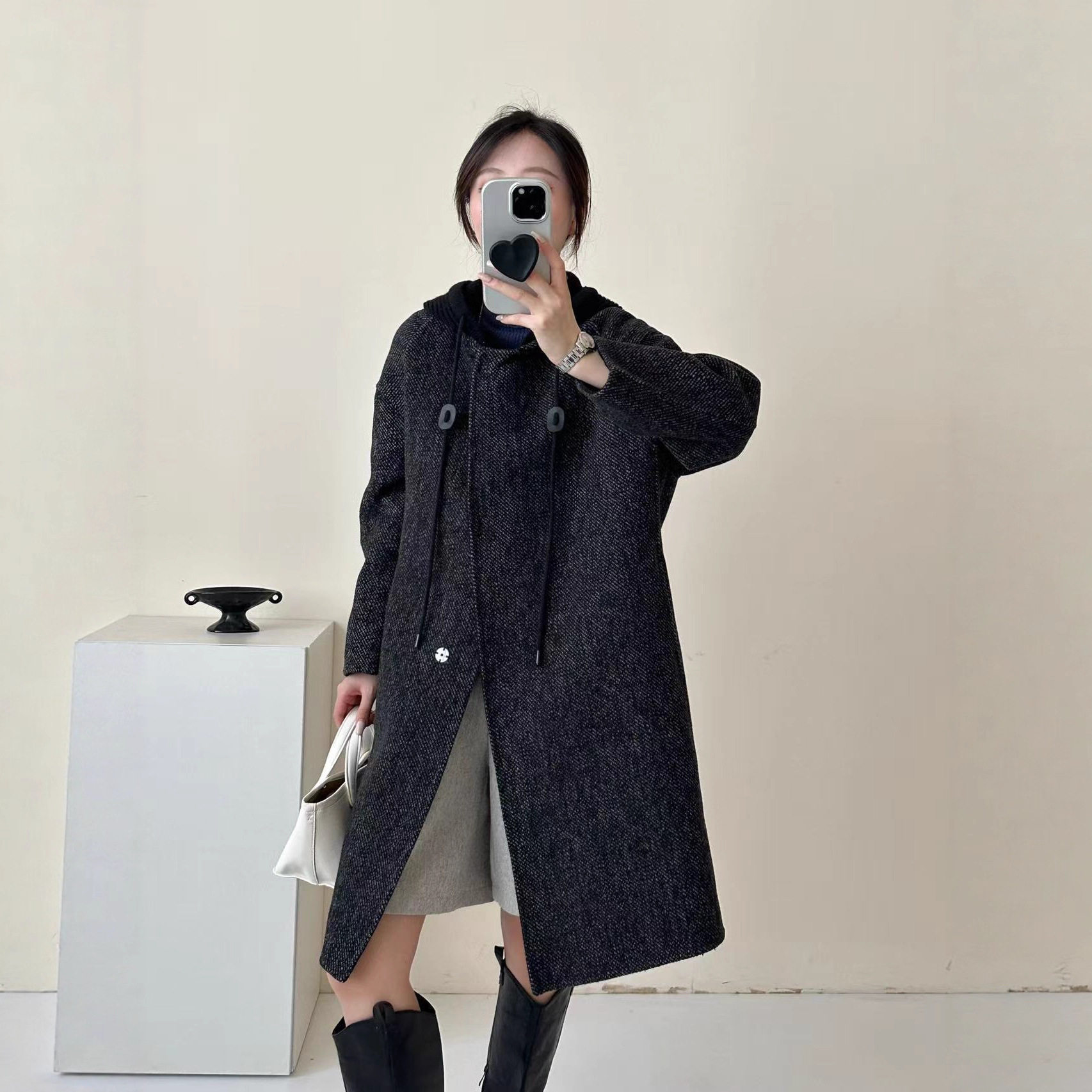 时尚高端气质中长款毛呢外套女秋冬装2024新款潮宽松长袖呢子大衣