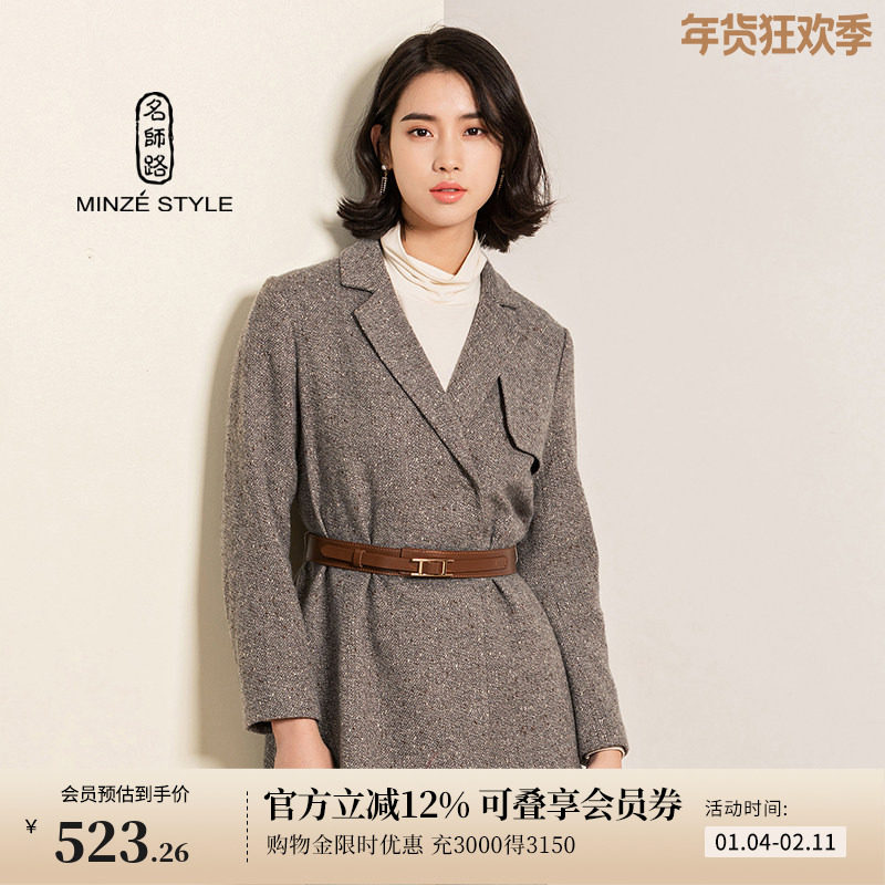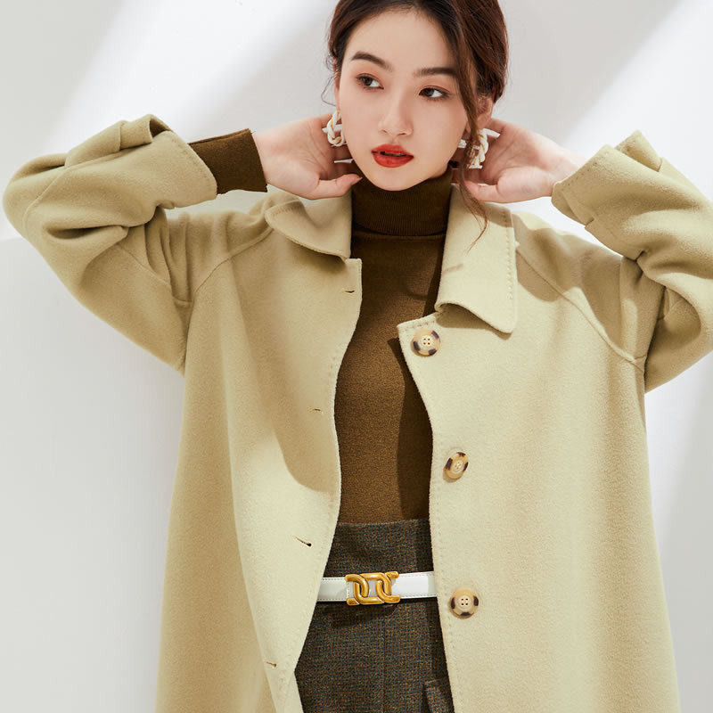 姐姐优品秋冬装chic上衣气质外套女长袖毛呢外套冬季大衣女中长款