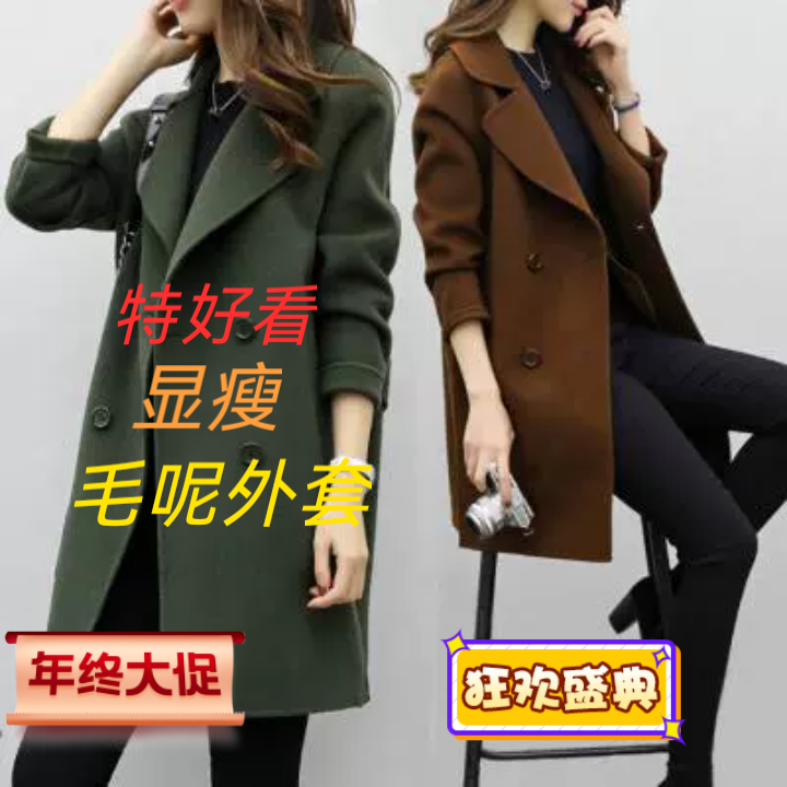 羊毛呢大衣女春秋冬装休闲翻领西装长袖中长款外套风衣外套赫本风