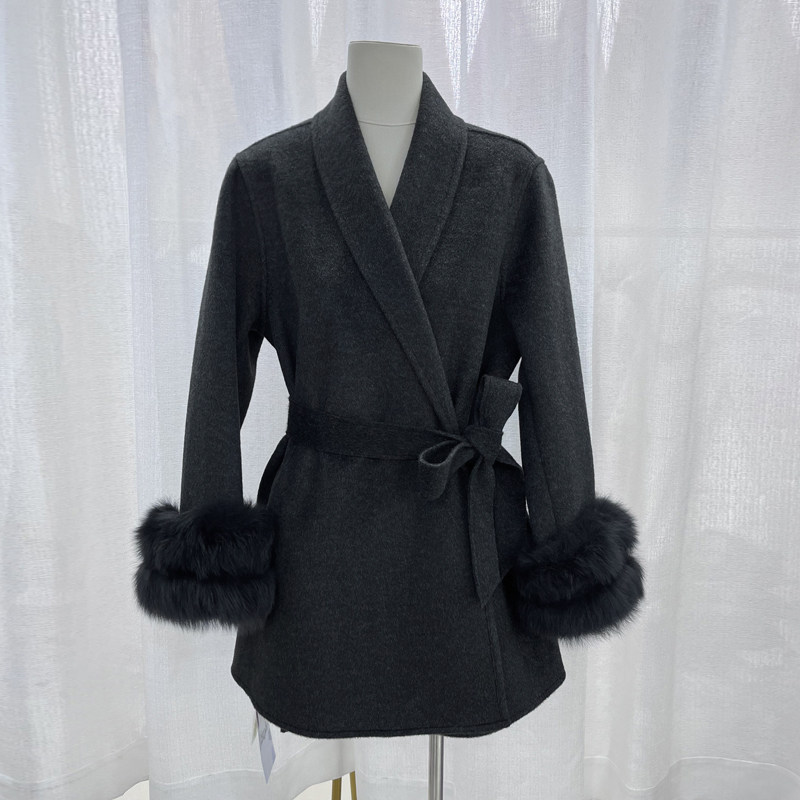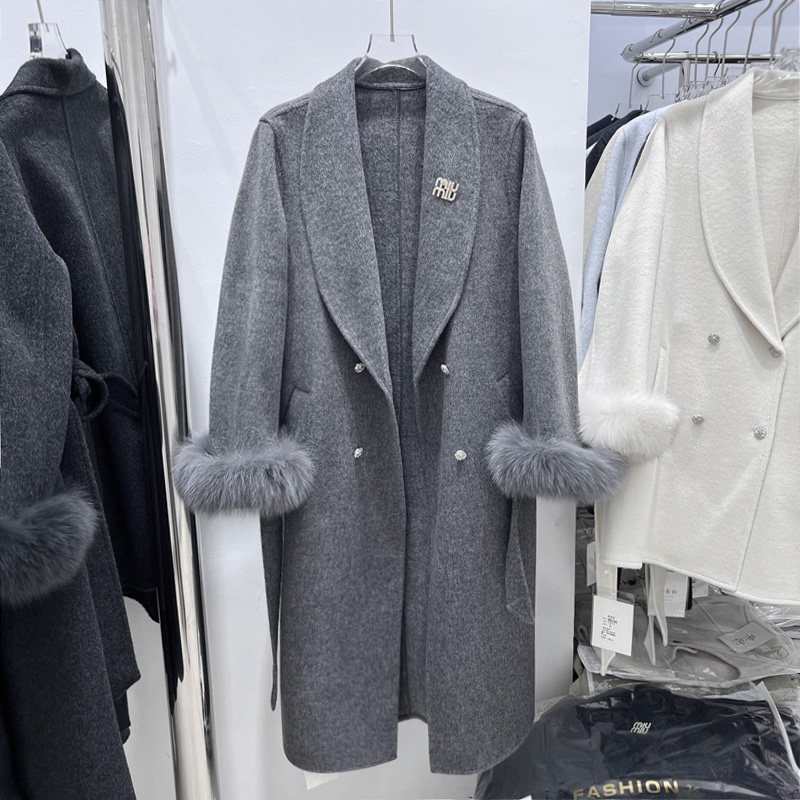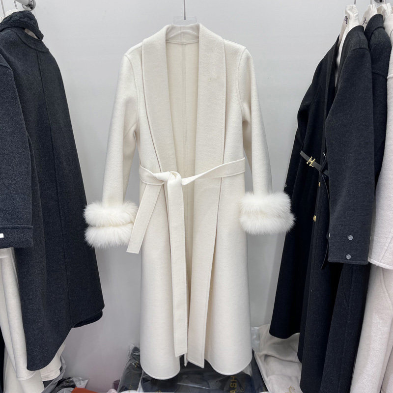 水貂毛呢大衣修身新款女春秋冬装中长款长袖外套西装棉风大衣皮草
