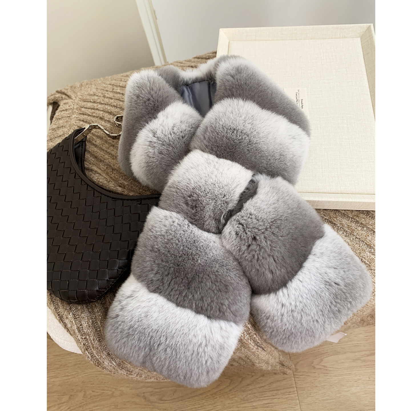 原色XXXD青紫蓝龙猫皮草圆领立领保暖加厚柔软马甲女横排短款高奢