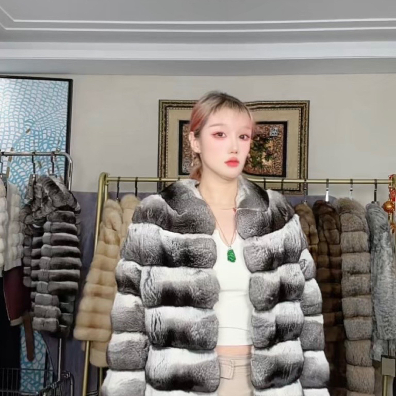 进口南美栗鼠皮草外套立领横排白影青紫蓝裘皮大衣龙猫喜马拉雅色