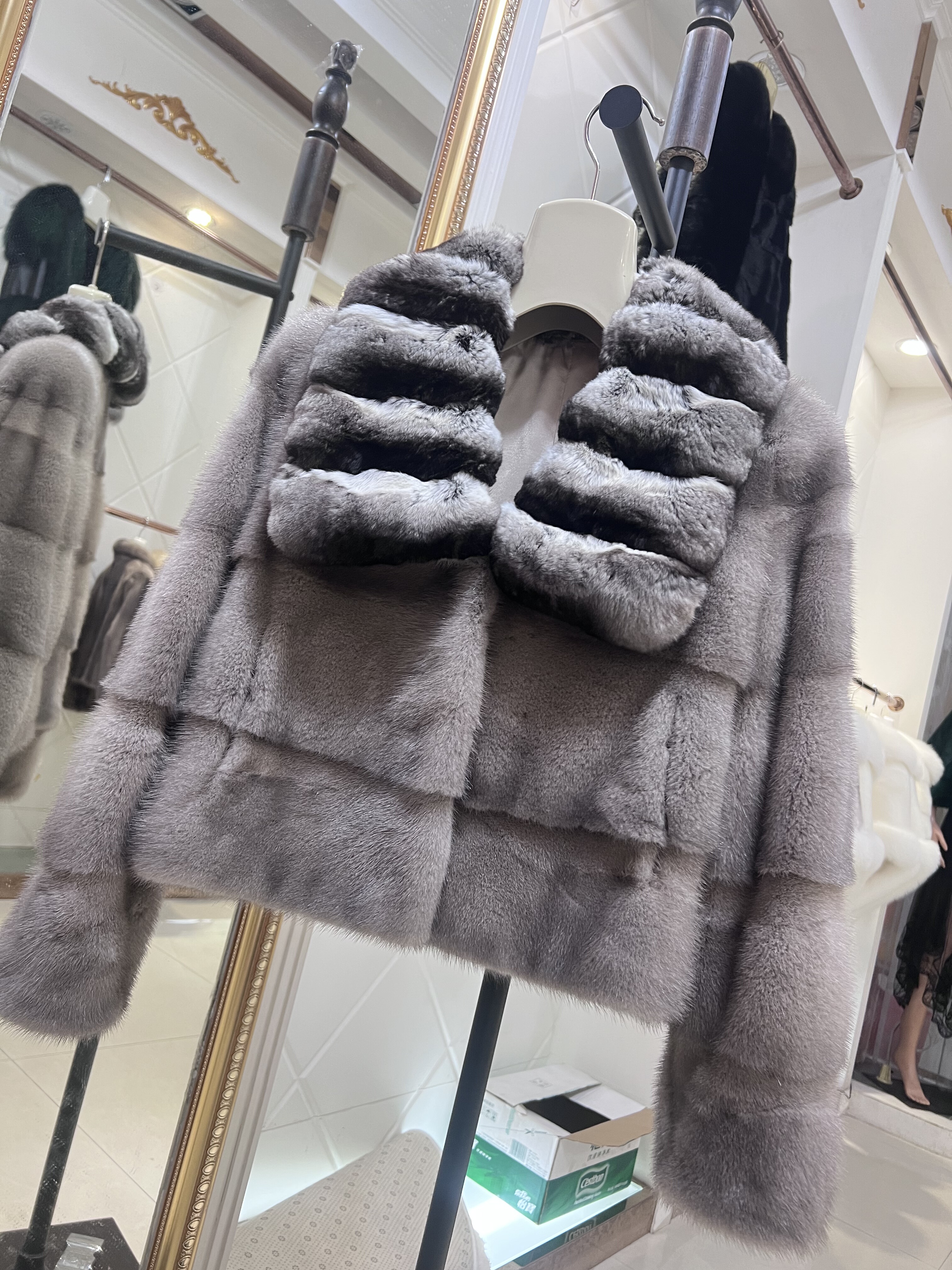 【TR】“小迪”2025冬季新款进口青紫蓝兔毛皮草时髦外套女短款