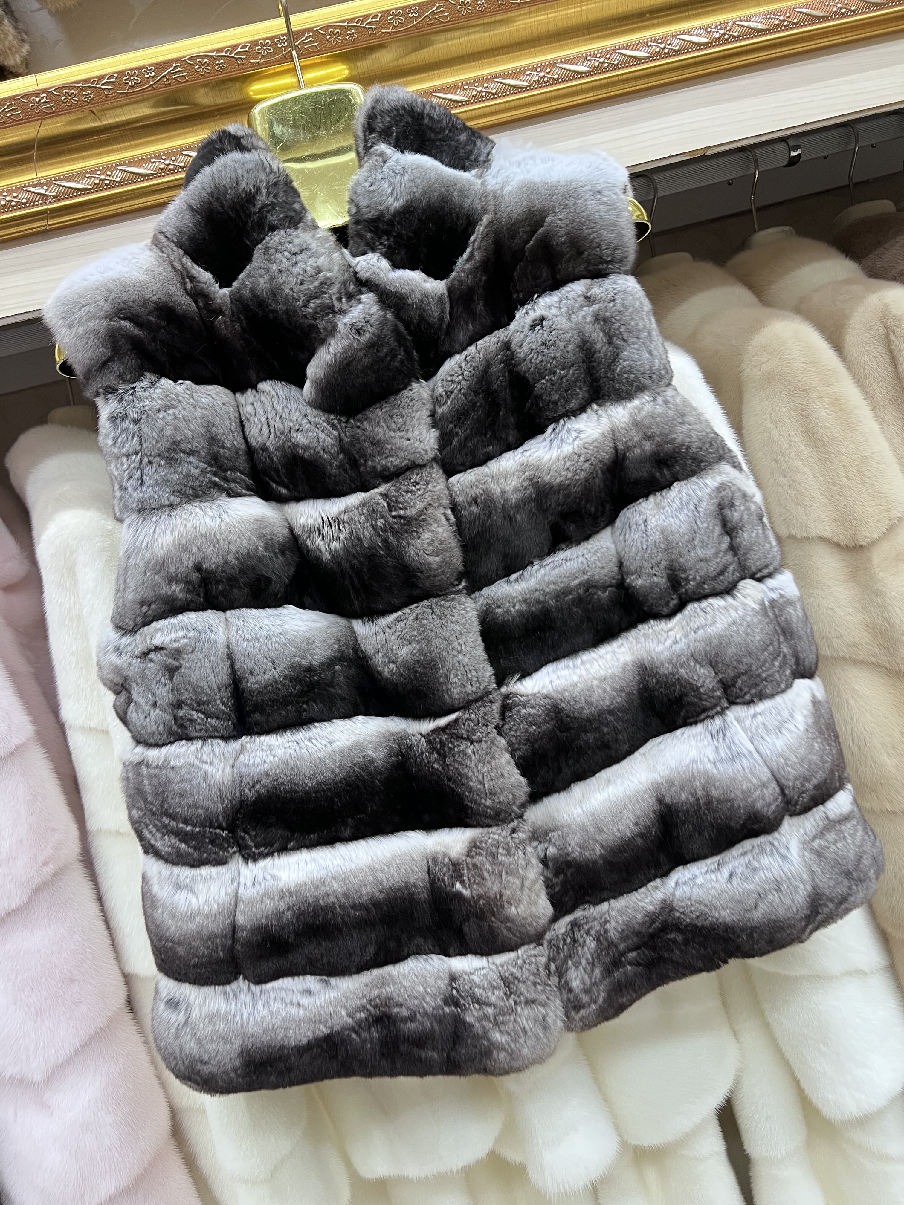 皇冠XXXD龙猫皮草马甲栗鼠皮草马甲青紫蓝马甲、专柜品质工厂直销