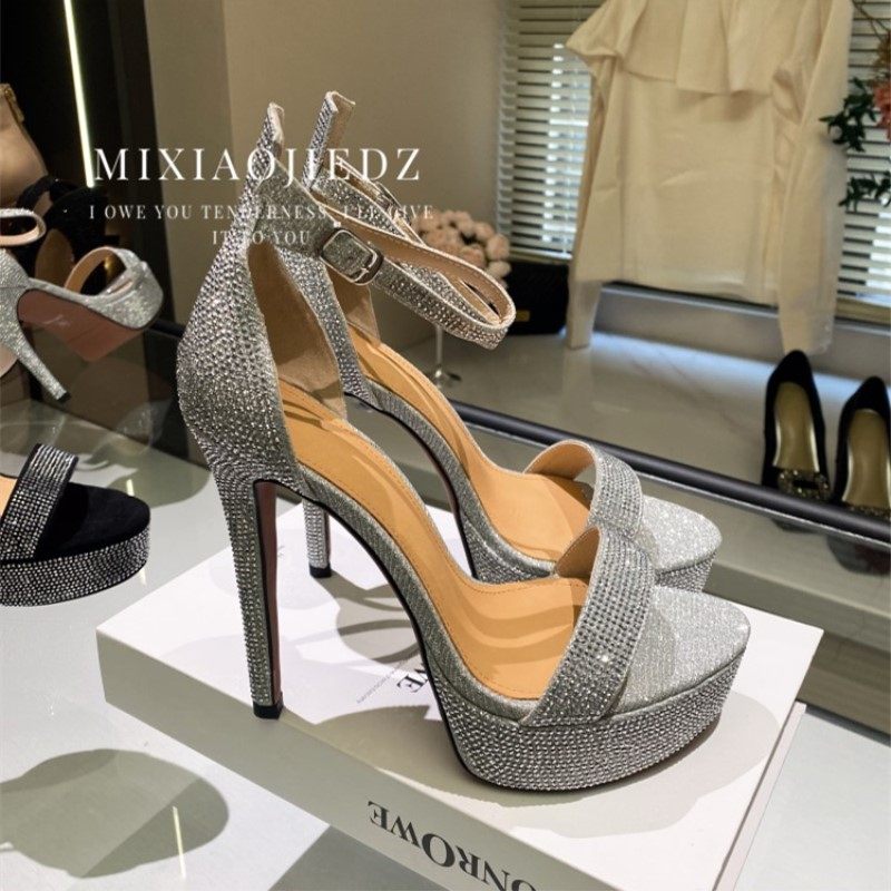 高跟鞋子女2024新款爆款婚鞋新娘鞋银色礼服鞋一字带细跟水钻凉鞋