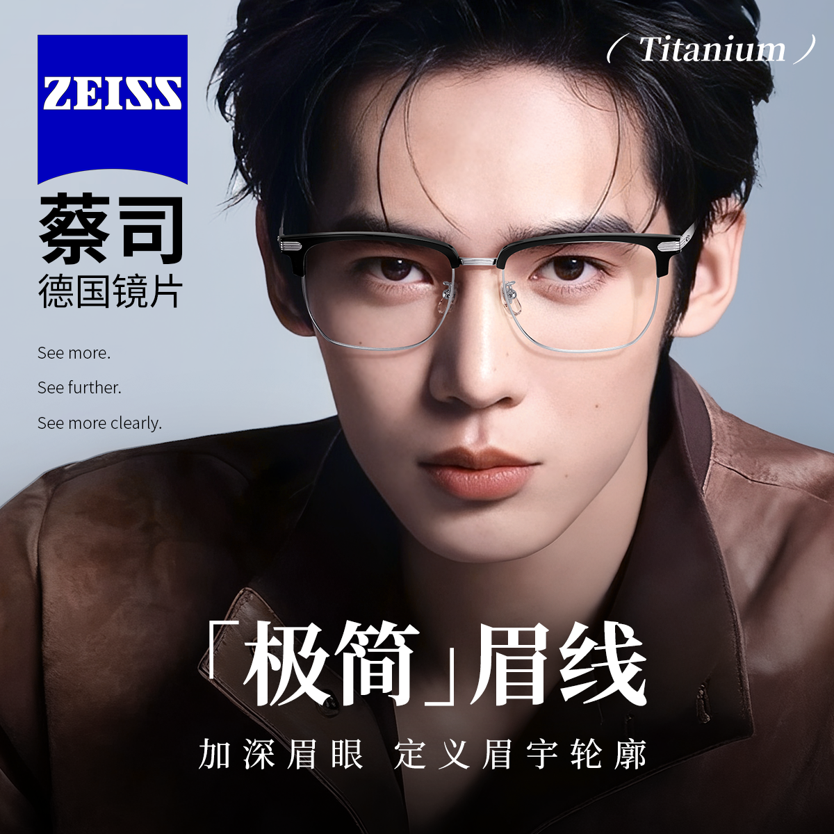 蔡司镜片近视眼镜男款斯文眉线半框可配度数防蓝光大框专业配镜W