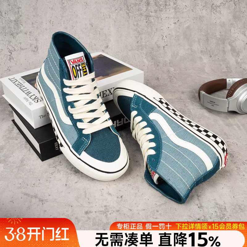VANS范斯男女鞋SK8-HI 138春季复古牛仔蓝棋盘格高帮休闲鞋帆布鞋
