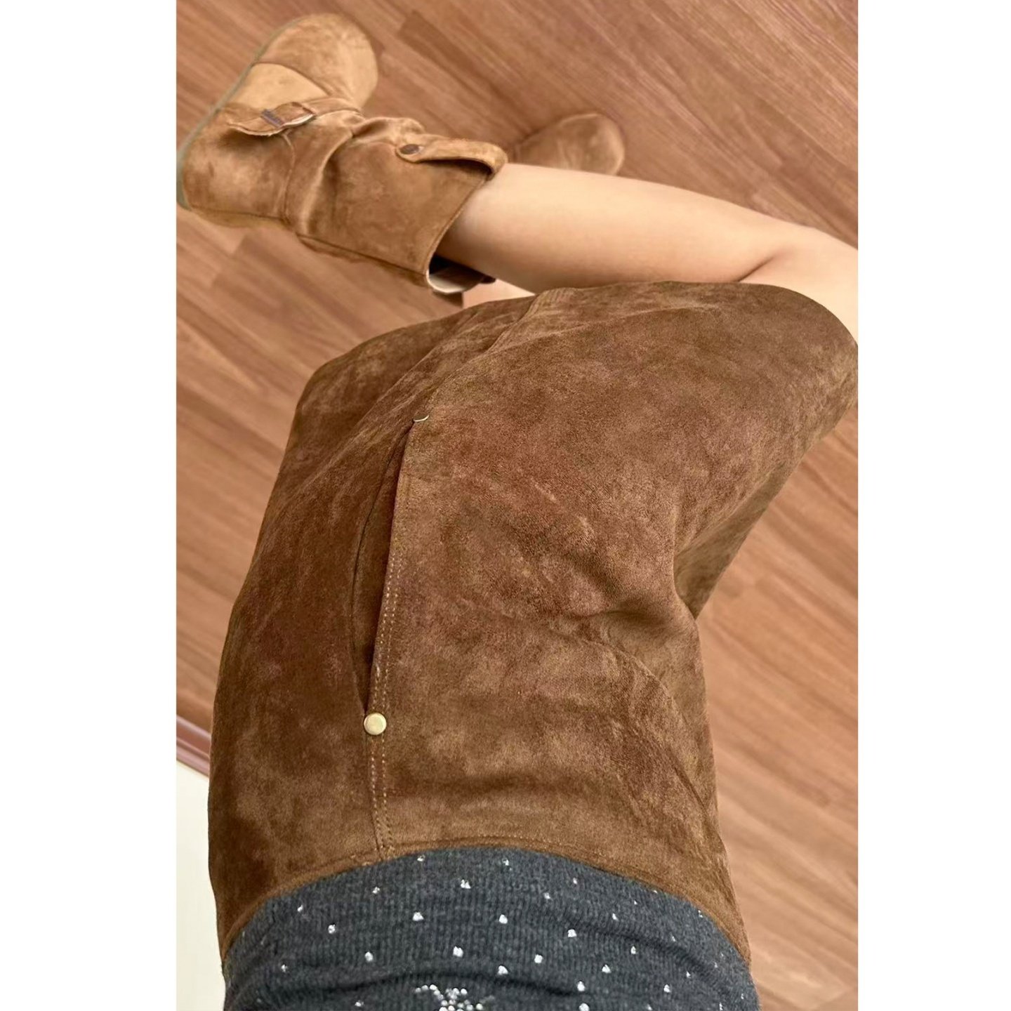 韩版咖色绒短裙女秋冬a字棕色半身裙大码胖mm包臀美拉德麂皮半裙
