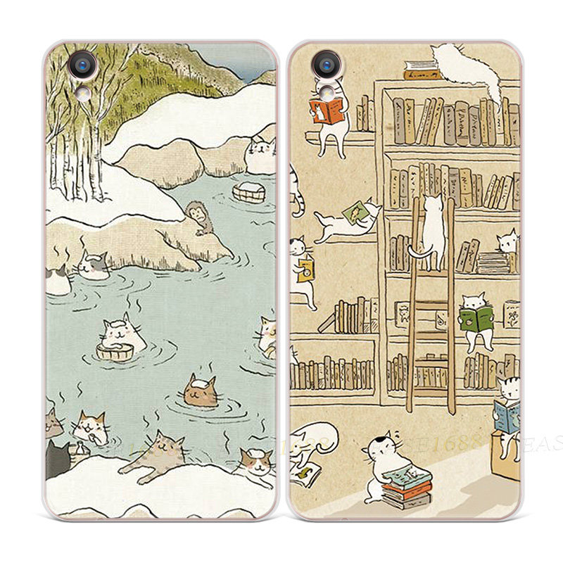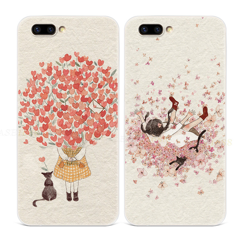 卡通文艺猫咪适用于oppo r11手机壳r7r9s可爱plus超薄插画Reno萌2