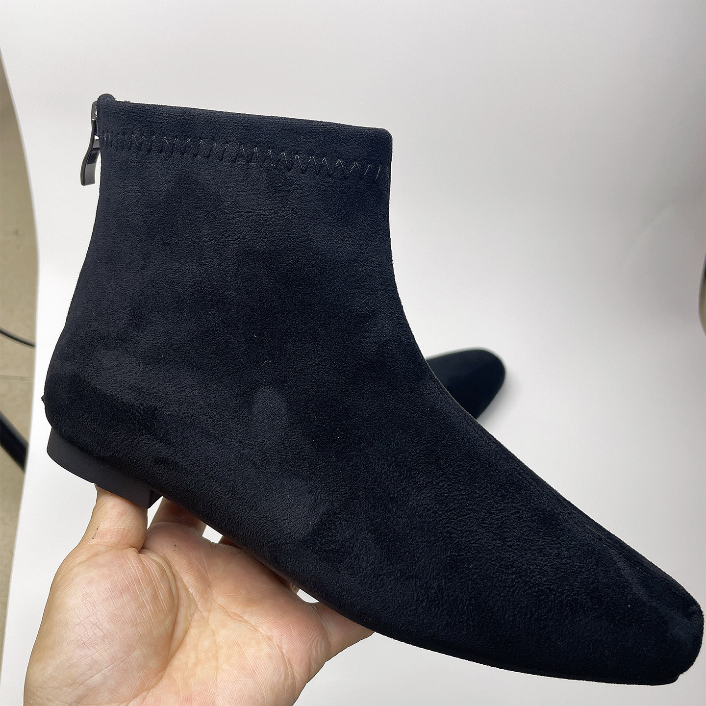 小码313233平底方头短靴黑色绒面后拉链女靴大码41-43保暖瘦瘦靴