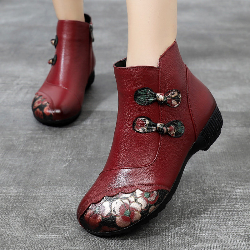 2025新款冬季真皮民族风妈妈鞋软底平底女靴大码短靴女41-43女鞋