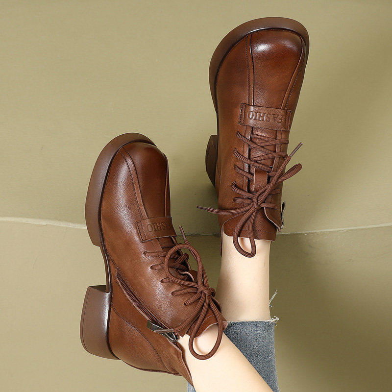 民族风新款舒适软底短靴2025新款冬季大码女靴41一43平底妈妈皮靴