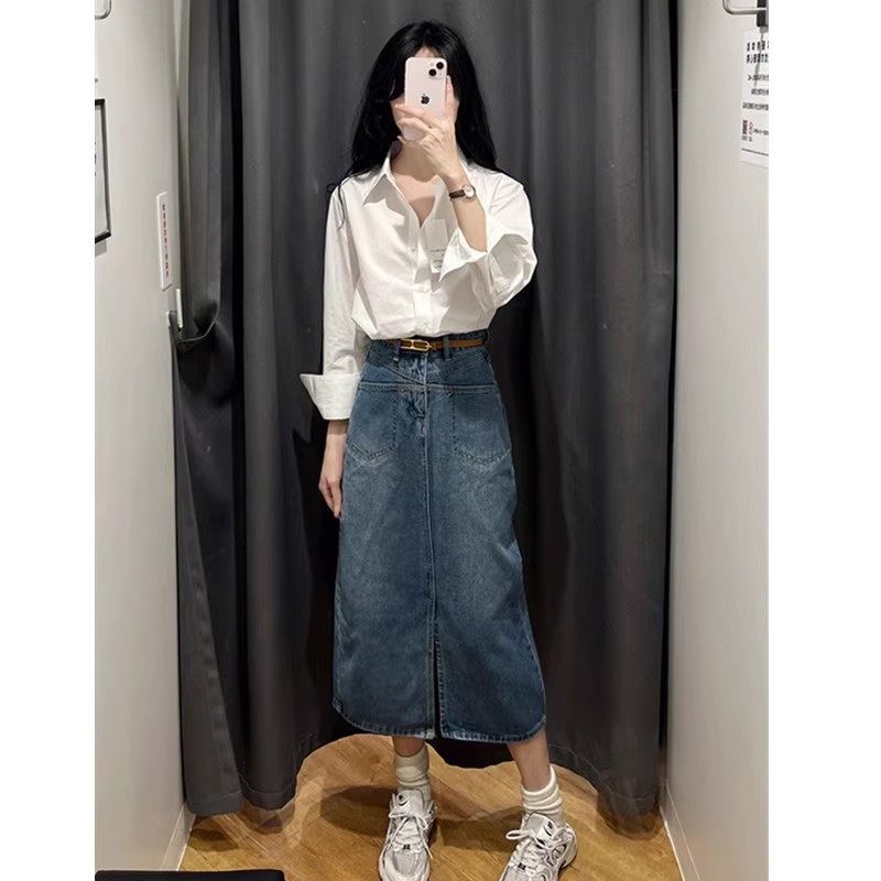 - 工装白衬衫女长袖