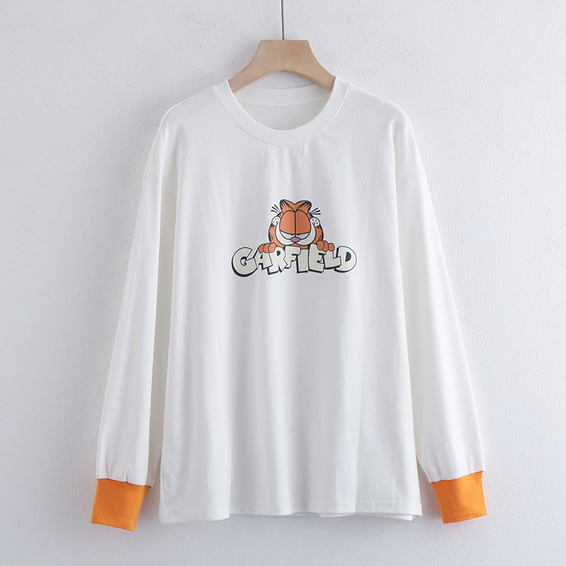 惠衣阁春季女棉质长袖t恤衫中长款T恤韩版宽松休闲白色t恤上衣