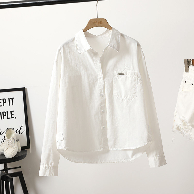 短款白色纯棉衬衫女2025秋装新款韩版宽松个性口袋百搭休闲上衣潮
