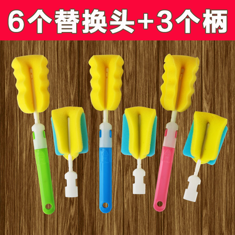 3个装奶瓶刷 海绵刷 洗杯子瓶刷清洗保温杯刷 宝宝奶瓶刷替换刷头