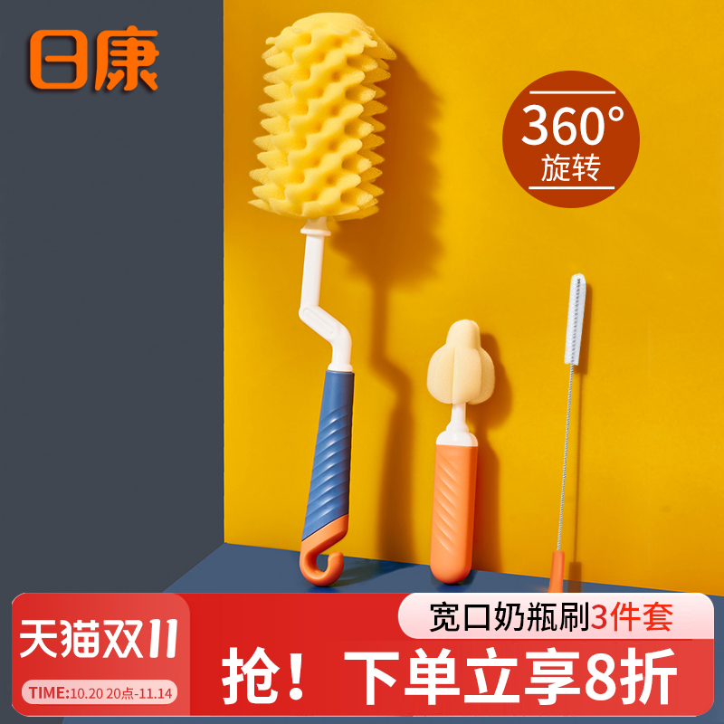 日康宽口奶瓶刷婴儿洗奶瓶刷子海绵奶嘴刷清洁刷套装360度旋转