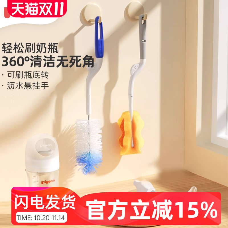 Pigeon/贝亲海绵奶瓶刷宝宝奶瓶刷360旋转(双刷法)奶瓶清洗刷EA14