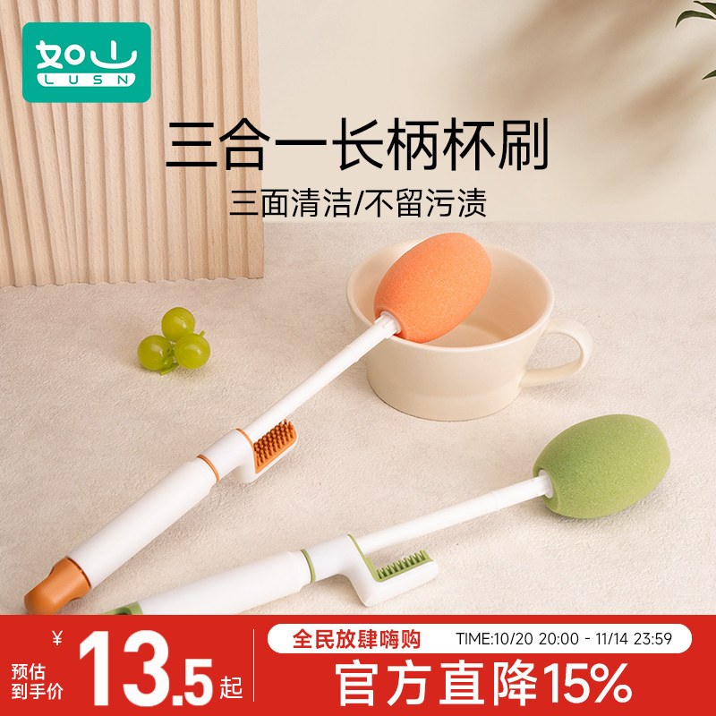 如山海绵奶瓶刷三合一长柄清洁刷婴儿专用杯刷奶瓶刷子婴儿洗杯刷
