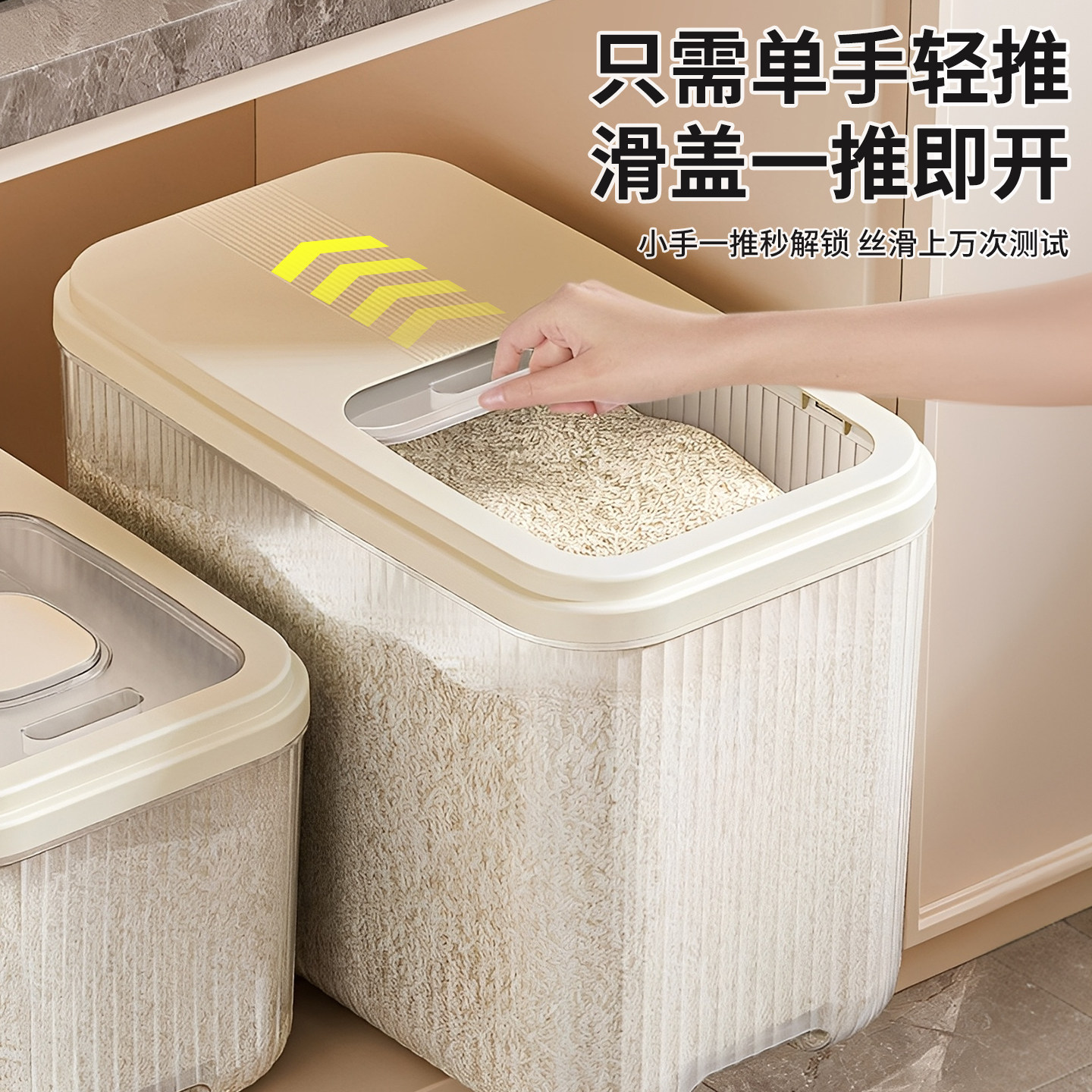 家用米桶防虫防潮厨房透明推盖大容量杂粮面粉密封窄缝大米收纳盒
