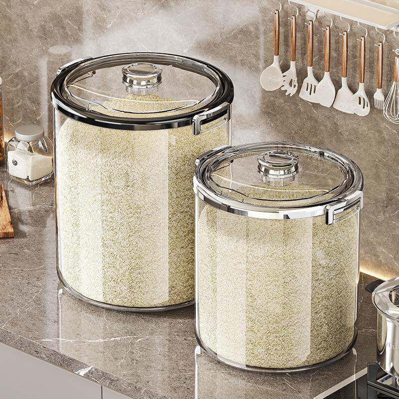 装米桶家用pp材质带盖食品级储米箱五谷杂粮圆形20斤透明储存面粉