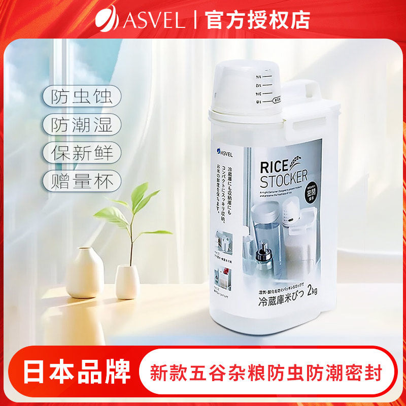 ASVEL米桶防虫防潮透明密封 家用塑料杂粮储米箱面桶储物罐带量杯