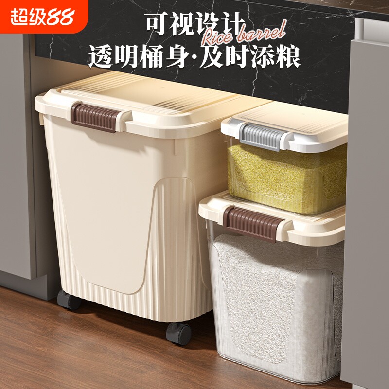 米桶家用透明20斤防虫防潮密封罐存米桶食品级五谷杂粮大米收纳盒