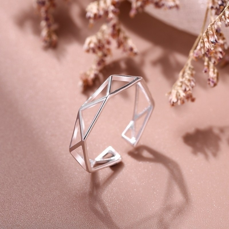 冷淡风镂空几何戒指女食指戒S925纯银日韩简约学生网红情侣对戒潮