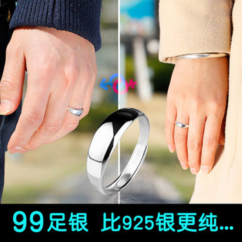 999纯银情侣戒指一对男女开口对戒日韩个性简约可刻字情侣礼物