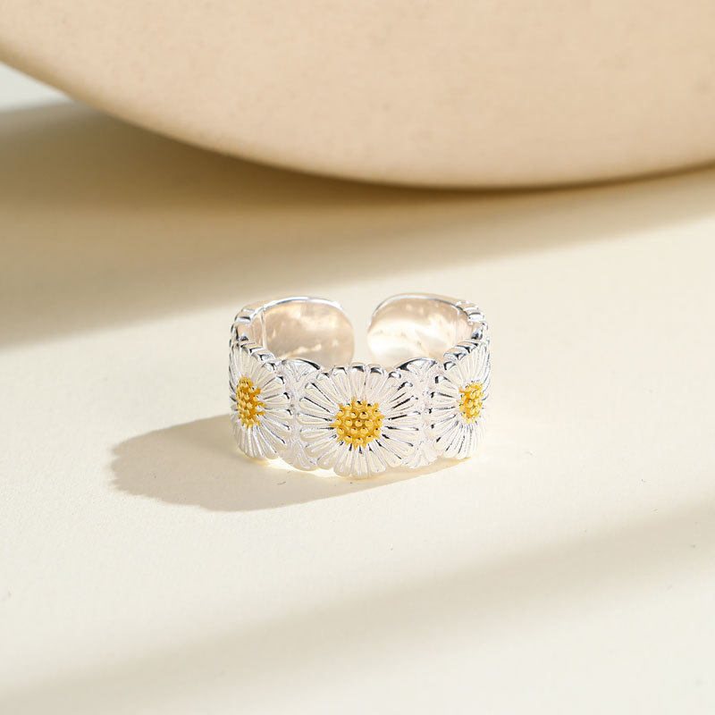 s925纯银日韩志龙同款时尚小雏菊开口戒指男女情侣款网红直播尾戒