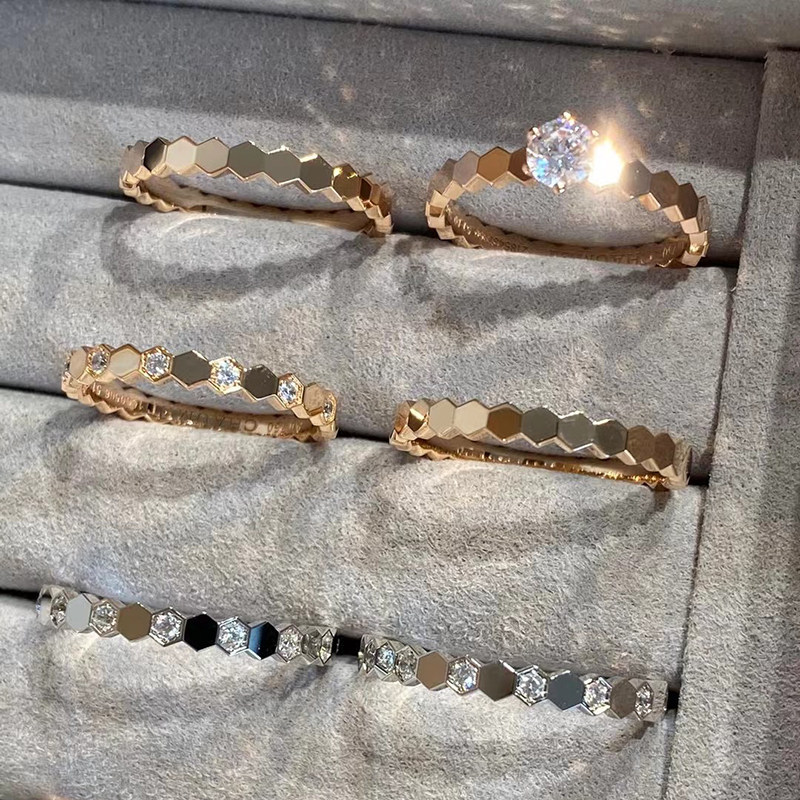 情侣戒指爱意蜂巢婚戒日韩百搭ins叠搭细指环925纯银镀金大牌复古