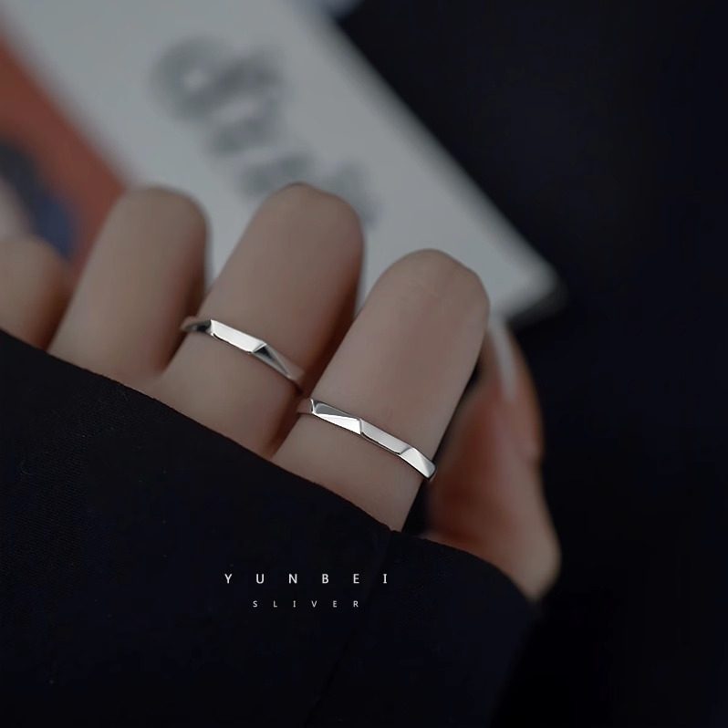 S925纯银简约立体光面菱形开口情侣戒指网红指环日韩饰品简约气质