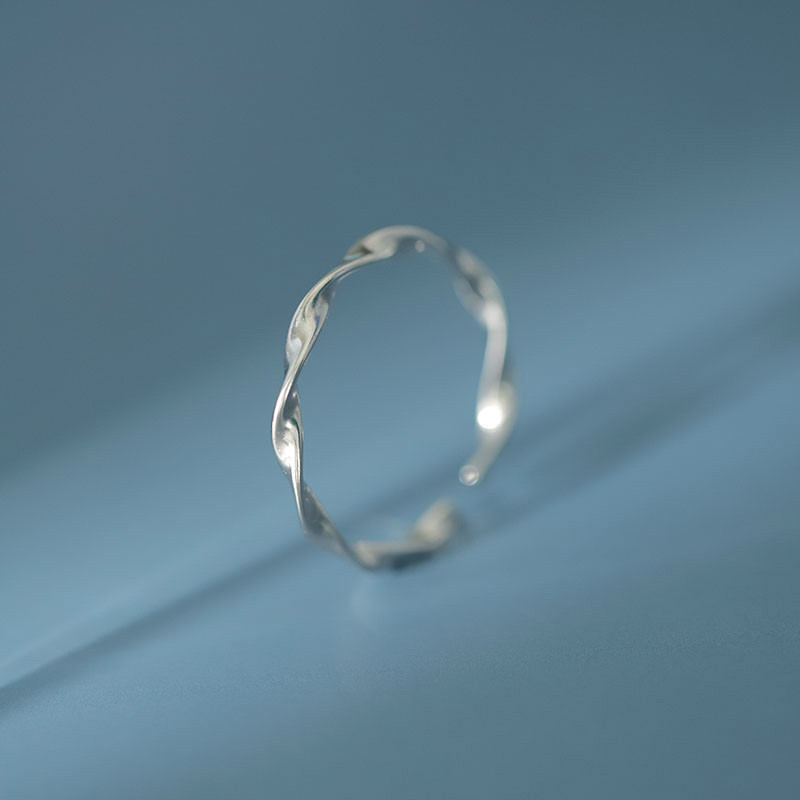 日韩简约小清新S925纯银饰品扭绳戒指情侣开口指环生日礼物百搭潮