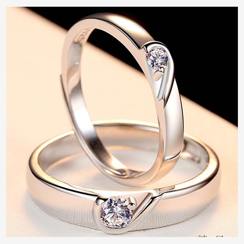 情侣戒指纯银一对闭口男女婚戒日韩版仿真钻戒开口款对戒圣诞礼物