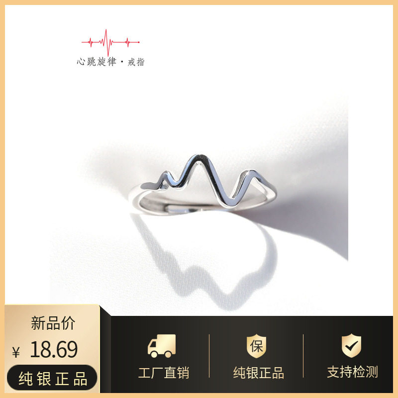 bling手作[心跳]S925纯银食指戒指情侣日韩简约学生对戒一对女男