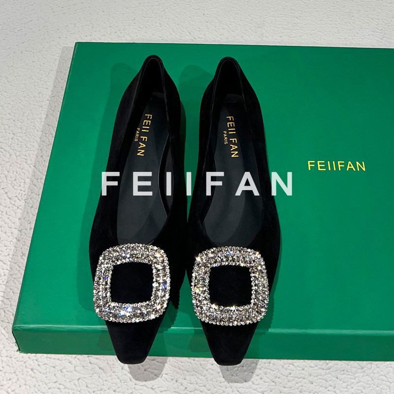 平底单鞋女2025秋冬新款水钻方扣法式绝美不累脚软底绒面尖头鞋子