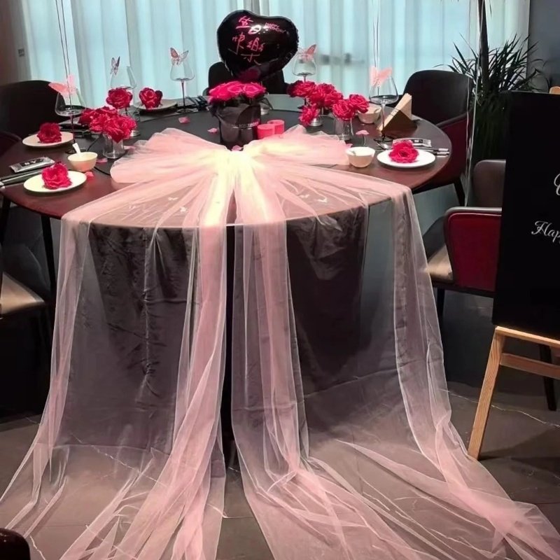 纯色网纱桌布蝴蝶结桌面装饰纱甜品台桌布装饰生日仪式感桌面布置